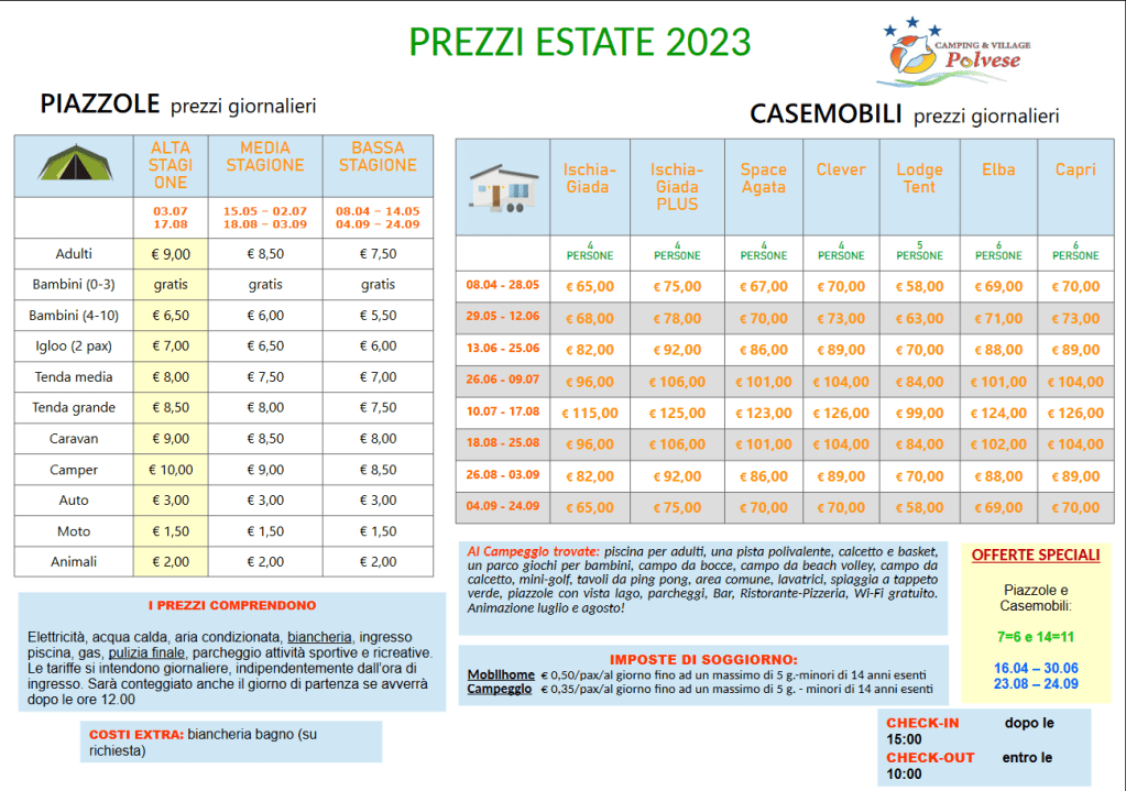 Die Übernachtungspreise auf dem Campingplatz Polvese